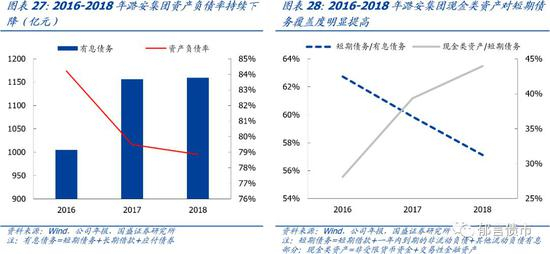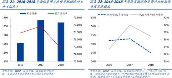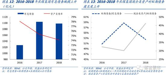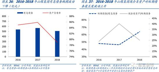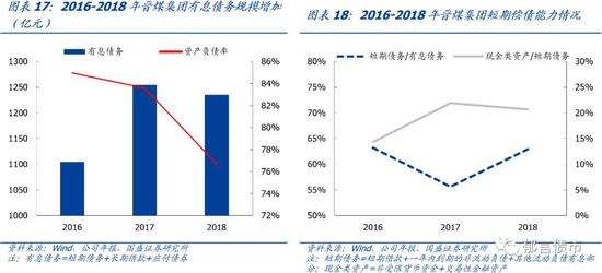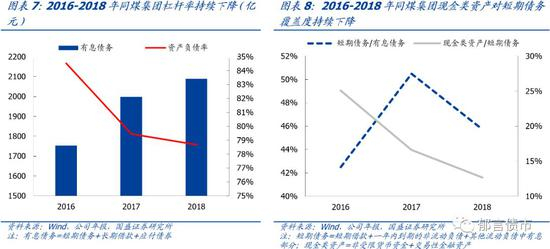18年资产负债率下降较多,短期债务占比较高。2018年晋煤集团资产负债率为76.71%,相较17年下降6.88个百分点,主因18年采矿权重估增值较多。18年短期债务占有息债务比例为62.91%,处于较高水平。2018年现金类资产/短期债务为20.66%,高于同煤集团和阳煤集团,位列7大煤企的倒数第三。
