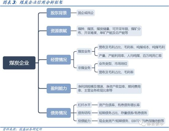 本文主要从股东背景、资源禀赋、经营情况、盈利能力和债务情况五大方面分析煤炭企业。股东背景主要关注是国企还是民企,煤炭行业具有强周期性,在行业景气度较低时,国企可能会获得一定的政府支持,从而提高抗风险能力。煤企的生产经营依托其所拥有的煤炭资源禀赋,煤种稀缺性、煤质优劣、煤炭储量、生产能力等因素较为重要,直接影响煤企的营收规模和盈利能力。经营情况方面,除了主业的煤炭业务,还需关注非煤业务。由于煤炭开采成本通常变化较小,煤炭价格波动对煤企盈利情况影响较大,因此煤企通常会延伸产业链,发展非煤业务以降低经营风险,需关注非煤业务类型和盈利能力。常见的非煤业务包括贸易、电力、煤化工和焦化等。盈利能力主要关注煤企整体的盈利表现,包括净利润规模及增速、净资产收益率(ROE)、期间费用率和主营业务收现比率等指标。债务情况主要关注资产负债率、有息债务增长率、有息债务期限及品种结构、短期及长期偿债能力等。