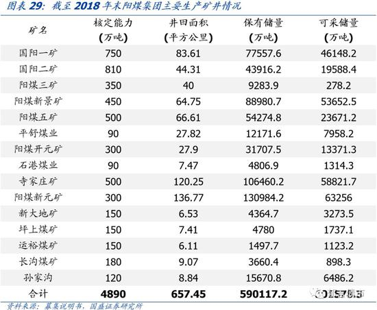 煤炭资源储量较丰富,无烟煤产量高。阳煤集团煤炭资源主要分布在沁水煤田晋东矿区,在产矿井分布于山西阳泉、晋中、忻州、朔州、临汾、太原六个地市。目前集团拥有44个在产矿井,年生产能力8050万吨/年,保有储量85.6亿吨,可采储量41.5亿吨。阳煤集团无烟煤产量占全国无烟煤产量的10%以上。