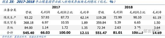 煤炭主业突出,去产能带动盈利明显改善。2016-2018年煤炭业务收入由591.89亿元上升至780.58亿元,占比由34.79%上升至44.22%。受益于去产能推进,2016年中以来煤炭价格企稳回升,毛利率由16年的30.79%上升至17年的36.97%,18年小幅下滑至35.33%。