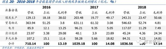 煤炭产量增速较快,生产效率较高,煤炭生产业务盈利能力较强。2016-2018年,山煤集团自有煤炭产量分别为2657万吨、2727万吨和3529万吨,年均增长16%左右;由于人员负担小,生产效率较高,18年人均吨煤高达2039.88吨/人,煤炭生产业务毛利率为62.19%,盈利能力较强。18年煤炭生产业务贡献了90.10%的毛利润,是集团主要利润来源。