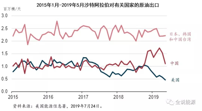 根据2018年12月石油输出国组织达成的减产协议,沙特阿拉伯减少了原油产量,原油出口量、尤其是对美国的原油出口,也随之下降,但是中国等有关国家,从沙特阿拉伯原油进口数量却在不断增加。