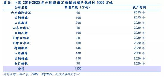 从镍铁需求端看,据SMM数据,国内2019年1-8月镍铁月均产量4.83万吨,8月产量达到5.32万吨,假设2020年月均产量5.5万吨,全年需求将达到66万吨,同比增长35%。