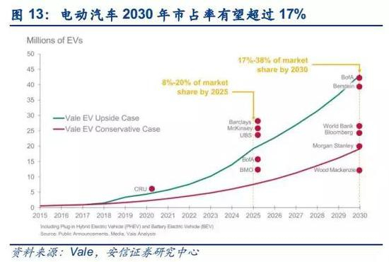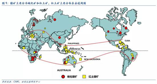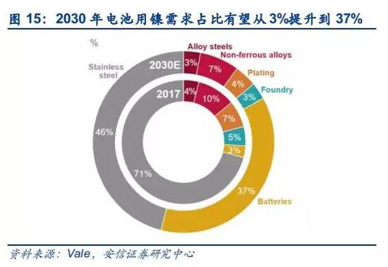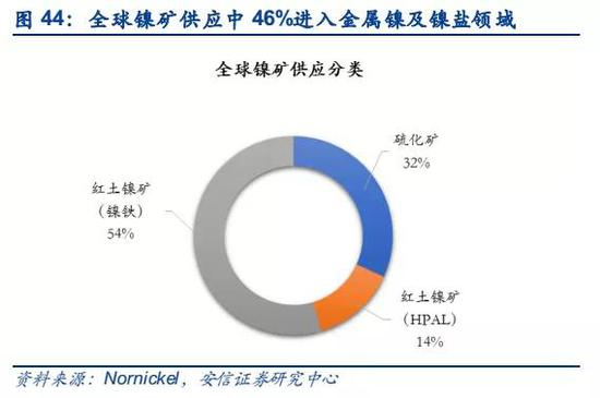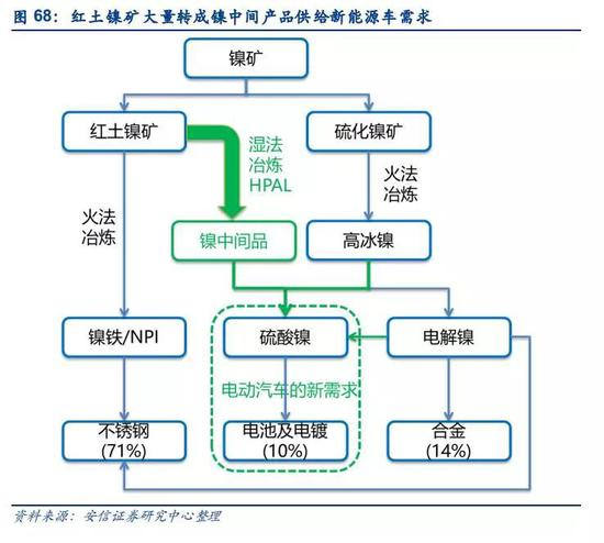 电动汽车对硫酸镍的需求有望再次拉动对硫化镍矿的需求。电动汽车动力电池所需的镍原料为电池级硫酸镍,目前电池级硫酸镍的供应来源主要采用硫化矿为原料;红土镍矿湿法工艺由于其投资大,运营成本偏高,短期尚未达到大规模扩大生产的条件。电动汽车对镍的需求迅速增长,有望拉出供需缺口,驱动镍价重回上行通道。
