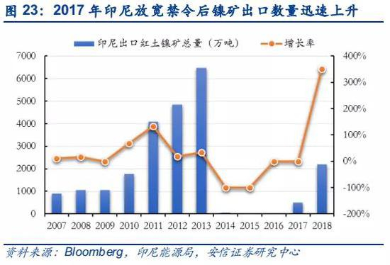 2020年1月,印尼政府再次禁止镍矿原矿出口,意在针对未来新能源产业需求释放。由于镍需求的增加,原定于2022年1月的出口禁令提前到2020年1月,有望令印尼当地的镍产业进一步加速发展,特别是目前在印尼投资巨大的湿法项目。