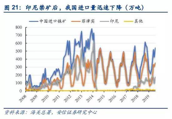 综上,如果按照月度推演,国内镍铁将在2020年6月左右出现无米下锅的局面。但是需要注意的是,目前离缺口出现时间还有8-9个月时间,如果印尼镍矿与镍铁大幅放量,叠加印尼以外红土镍矿出口国的出口超预期,缺口出现时间可能会出现后移或者消失。