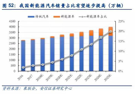 全球新能源汽车保有量有望持续高速增长。据EV -VOLUMES数据显示,2018年,全球电动汽车保有量达540万辆,比2017年增长64%,随着各国采取一系列推广电动汽车相关政策出台,预计2020年有望达到1300万辆,2030年将接近1.3亿辆。据乘联会数据显示,我国2018年新能源车产量约101万辆,同比增长89%,据乘联会预测,预计2020年有望达到200万辆左右,2025年接近800万辆,新能源汽车的销量占比有望从2017年的3%提高到2025年20%。