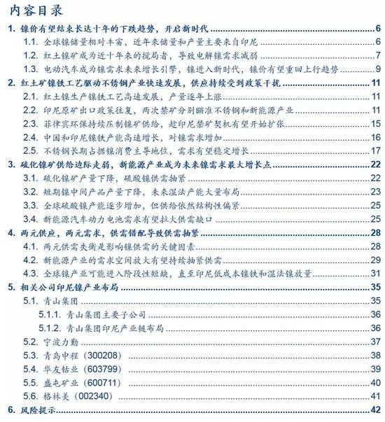 ■风险提示:1)新能源汽车动力电池对镍的需求不及预期;2)不锈钢增速不及预期;3)硫化镍矿和红土镍矿供给超出预期。