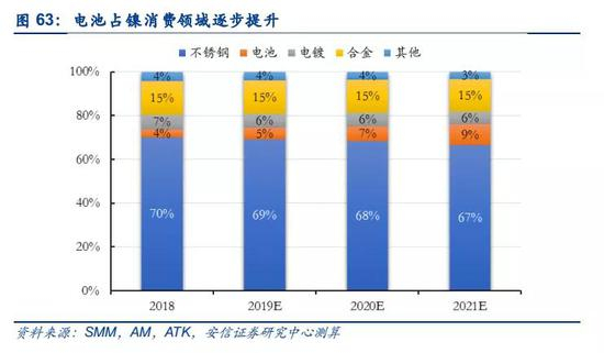 ■不锈钢占据镍消费主导地位,需求稳定增长。2018年全球不锈钢产量5,073万吨,同比增长5.5%,用镍量占镍总消费比例高达71%,一直是镍需求增加的主要力量。2019年全球不锈钢新增产能集中在中国和印尼,计划投产产能超过1000万吨,新增产能的投产有望持续拉动镍需求,预计2019-2021年CAGR为6%。