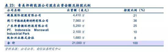 2018年10月,青山与华友钴业在印度尼西亚 Morowali 工业园区建设年产 6 万吨镍金属量的红土镍矿湿法冶炼项目。