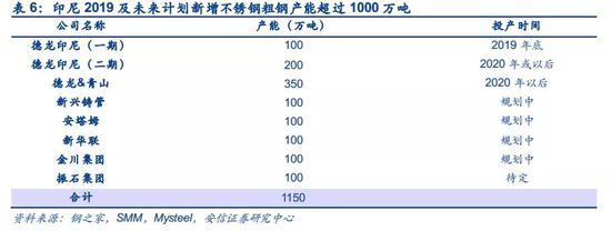 印尼有望成为全球第二大不锈钢生产国,对镍的需求将进一步加大。印尼禁止原矿出口后促使投资向产业链下游延伸,中国企业在当地开始大量建设冶炼厂和不锈钢加工厂,到2018年底,印尼青山工业园全部建成,不锈钢产能达到300万吨,同时印尼德龙300万吨不锈钢产能在2019年也有望投产。远期来看,预计整个印尼新增不锈钢产能规划达到1150万吨,有望成为全球第二大不锈钢生产国。