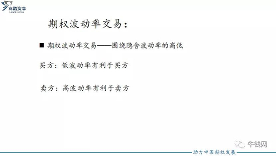 还有,什么时候卖出?我认为行情结束就可以卖出了。比如做白糖,假如白糖没有行情了,本来是做多白糖,但没有多头行情,你肯定要平仓。还有一个就是波动率,快速上涨一定要选择平仓,不管行情未来怎么走,因为波动率对价格的影响变化1%,它可能超过10%的影响。所以波动率快速上涨,一定要选择把头寸先平出来。那卖方呢?如果你真的要做卖方,那标的很重要,一定要选择高的波动率。然后就是保证金制,卖方是保证金制,其实期权的卖方也可以理解为做期货,因为它是保证金制的,那它的权利和义务是对等的,那么这个时候一定是事中风控。