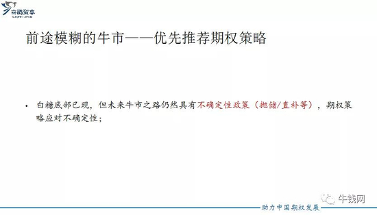 白糖现在这个位置如果要大量的去做空也不现实,国际原糖都跌到这个位置了对吧?未来的供需这一块肯定是有利于价格的上涨,如果真的未来有行情,牛市价差,如果要用期权的话,那可以节约我们的成本,提高我们的收益。这里有一个价差,大家可以拍一下,因为今天的时间也有限,也没办法去展开。