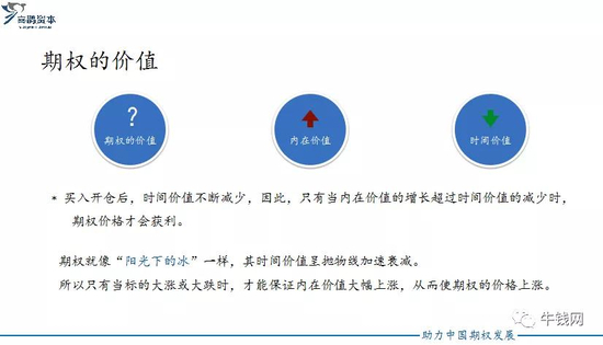 期权还有一个波动率的概念,把波动率理解清楚了,期权也全部就搞定了。期权并不复杂,它只是个工具,来为我们交易做服务的。期权它跟期货不一样,跟股票也不一样,它有个时间概念,有个时间成本,就是它的时间价值。对于我们做买方的来说,那这个天然就对我们不利。