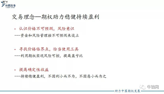那么,我们在交易过程中用到期权,其实可以提高很多的一些确定性的收益,这里我用了一句话,就是:不因利小而不为,不因恶小而为之。因为在期权工具上它确实有很多功能,包括套利,包括波动率,包括不同月份之间,包括市场出现一些剧烈情绪波动的时候,期权的价格会非常之高,这个时候我们可以卖一些期权。虽然说它的利润短期可能不是很乐观,但是我认为这个可以以小慢慢的累积,做时间的朋友,助力我们持续稳健的盈利。