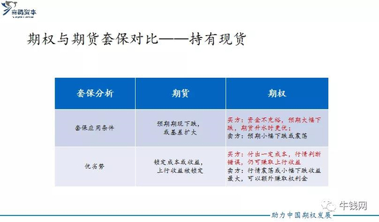 还有,期权与期货在套保上,我认为期权它也有它的优势。比如说一些现货贸易商怕跌在手中对吧?你这个时候用期货,其实它的保证金很大。那如果要防止它跌的话,我拿小小的资金买个看跌期权,占用的资金量很小,又不妨碍我们继续。那如果我们错的话呢?你如果用期货就锁仓了。但是我用期权的话,如果现货它一直涨,它也并不妨碍我现货上的收益,因为我买的是看跌期权,只是一点点的权利金。所以这个在套保运用过程中,持有现货的时候用了一个期权作用。还有,持有现货我可以卖看涨期权,我收到权利也金也意味着是对冲我的风险。这个时候反而我不需要用成本去对冲,我还可以收钱去对冲我的成本。所以我相信未来国内用期权来做套保会越来越普及,因为这个工具确实用得好是很好的。