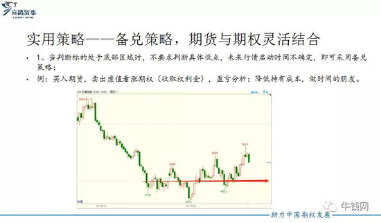 然后是备兑,其实备兑最简单,刚才我说的构建价格补偿,我持有股票我卖期权。我持有白糖期货,卖期权,这个也是一个备兑,降低我们的交易成本。就像我在上海有一套房子用来投资,我不住那为什么不把它租出去呢?这其实就是备兑,很好理解。包括像什么蝶式策略、波动率策略这些很多很复杂的一些策略,对我们个人投资交易者它并不适合用。