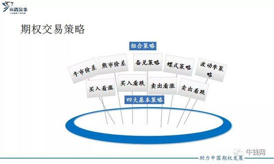 期权策略方面,大家可能感觉很复杂对不对?大家搞不清楚期权怎么这么多策略。其实越简单的策略反而是越有效的,我们用到最多的其实就是买。比如说你看好涨,你就买个看涨期权,你看好跌就买一个看跌期权。卖也是一样,卖看涨,卖看跌。这样来看好像是四个方向对不对?其实最终无非就是做多和做空,顶多我用个牛市价差,牛市价差是你买一个看涨卖一个看涨,降低我的持仓成本,因为我只有买的同时再卖个期权,没有关系,没有风险,反而会降低我的资金成本。