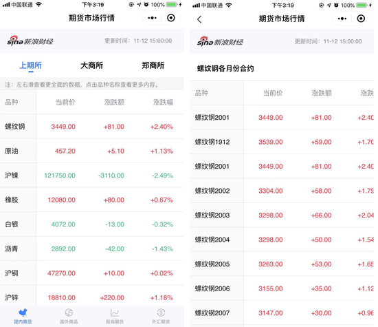 新浪期货小程序整合了国内外主流期货品种,包括黄金、原油、股指等内容,提供最全面的实时数据行情,操作简便可以帮助广大投资者第一时间了解全球大宗商品价格动态和涨跌幅等信息。