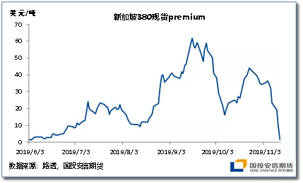 新加坡掉期价格虽然受到现货带动有所下滑,但并没有创出新低,从图2可以看出,11月14日远期曲线较其他所选日期更为陡峭,但却仍位于10月2日远期曲线的上方,而两条曲线对12月价格的预期其实是基本一致的,新加坡12月掉期价格是内盘1月合约定价的重要参考,也就是说10月以来内盘01合约的下跌是对内外盘价差回归的体现(图3),而价差回归的原因是随着限硫切换开启新加坡现货溢价预期的大幅下降。