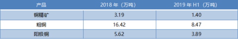 2018年,谦比希铜冶炼年分别生产粗铜 16.42万吨和、阳极铜5.62万吨。炼2019年谦比希铜冶上半年累计生产粗铜8.47万吨,较去年同期减少了19.2%;阳极铜3.89万吨,较去年同期增长了296.4%。