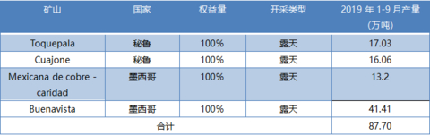 Cobre Panama铜矿于2019年第二季度正式投产,于2019年9月开始商业化生产。铜矿在在2019年的第二和第三季度增长良好,截至目前2019年Cobre Panama铜矿共生产了8.71万金属吨的铜精矿,包括9月份1.94万金属吨的商业生产。