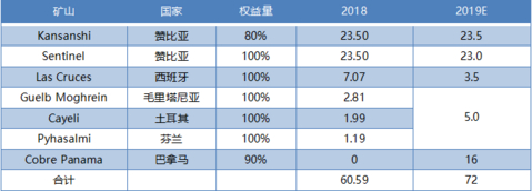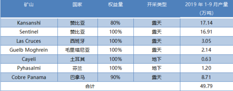第一量子矿业公司,拥有的在产铜矿包括位于赞比亚的Kansanshi 铜矿,Sentinel铜矿,位于西班牙的Las Cruces铜矿,位于毛里塔尼亚的Guelb Moghrein 铜矿,位于土耳其的Cayeli铜矿,和位于芬兰的Pyhasalmi铜矿,还有2019投产的位于巴拿马的Cobre Panama铜矿。