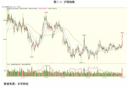 2019年以来铜价表现主要分为四个阶段:第一阶段:一季度全球经济明显放缓,制造业PMI指数纷纷下移至荣枯线,引发全球恐慌,但随后国家积极应对经济下行压力,出台多项刺激经济政策,减税降费以及实行宽松的货币政策,在此刺激下铜价出现一波上涨;第二阶段:进入二季度铜价迎来一波下跌,然而单就铜产业面来看,整体供需格局并未有巨大变化,影响更多仍旧来自于宏观的施压:贸易摩擦的突然升级、制造业景气指数始终徘徊在荣枯线以下、外贸环境趋紧以及汇率波动加大都削弱了一季度减税降费政策的影响;第三阶段:2019年下半年铜价表现更多的是区间震荡,造成震荡的主要原因是由于宏观定价与产业定价的不匹配造成,全球除中国外制造业PMI指数仍然在走低,而国内经济表现出足够的韧性,房地产的“稳”+基建托底作用以及产业方面铜矿供应阶段性紧张使得铜价下半年始终在46000至48000核心震荡;第四阶段:四季度以来,在美联储连续降息对冲下,全球主要经济体经济指标已呈现企稳的势头,制造业数据大多有所抬头。全球经济企稳的预期得到强化,市场投资信心大增,铜价波动重心抬高,并在19年最后一个月突然爆发,价格突破持续了大半年的箱体区间。