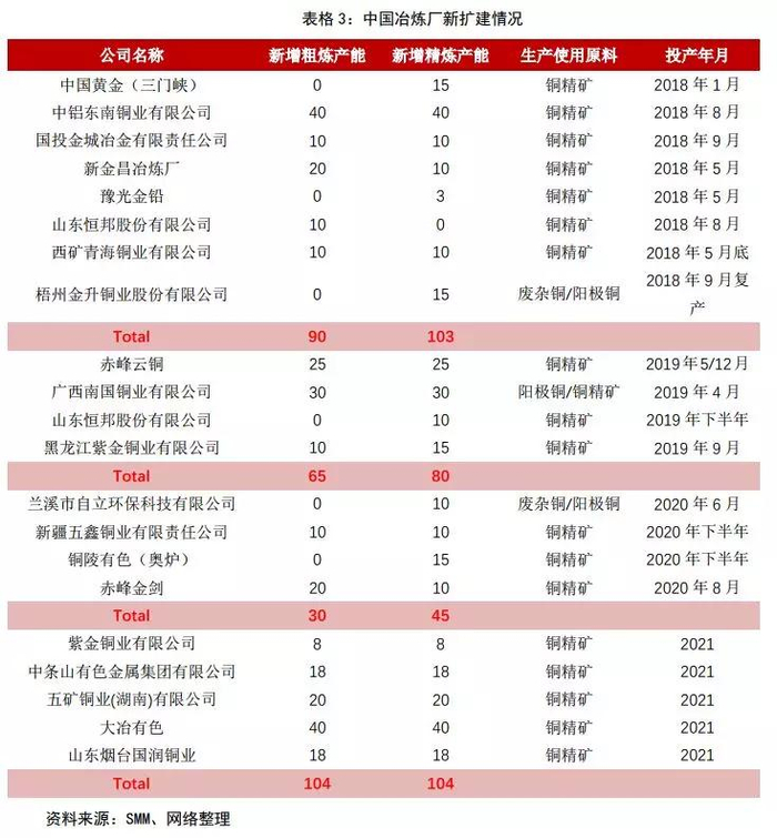 综合情况来看,随着2019年精炼产能的投放,国内精炼自给能力增强,当前铜产业供应主要取决于铜矿供应能否跟上。全球新一轮铜矿投资周期还没到来,产量释放需要更长时间,铜精矿至精炼铜供需仍将在一定时间内错配,2020年国内新投产能有可能同今年情况一样,向后推移。精炼铜产能和产出不应成为主要供给制约条件,长远看国内冶炼产业在下次矿石供应上升周期占据先机具有战略意义。