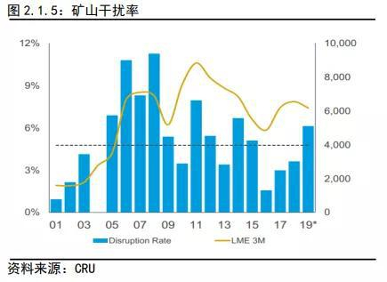 2019年,一季度共有3次罢工事件,大都以加薪及提供签约奖金解决;二季度Codelco旗下Chuquicamata铜矿罢工,导致影响产量1万吨左右。嘉能可8月份宣称其将关闭其位于刚果的Mutanda铜钴矿项目,关闭两年,且不太可能很快恢复。而此前,嘉能可关闭赞比亚Mopani铜矿项目的两个竖井,将于12月或明年1月投产。尽管此前Kamoto铜矿复产致其在刚果的Katanga项目铜产量增加,由于Mutanda和Mopani的关闭抵消其相应增量,2019年嘉能可非洲铜产量前三季度减少3万吨。