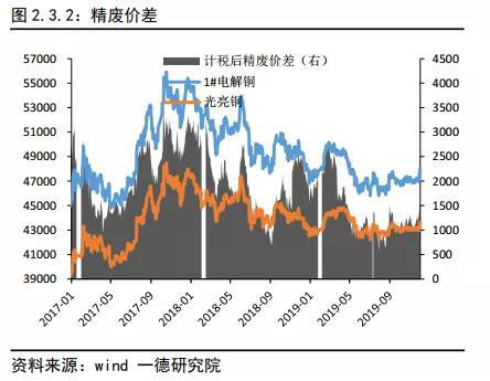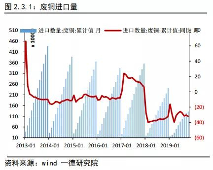 政策 2018 年底开始禁止铜废七类进口,《国家限制进口的可用作原料的废物目录》涉及铜的第六类和第七类,第七类进口原本监管的就比较严格,不单单需要进口资质,也需要进口的批文。从当前情况看,2019年颁发的废旧批文同比大幅减少,废旧政策的变化极大的影响中国废旧铜供应结构。废旧七类的进口量已经较低,实物量大幅下滑的背后是进口废铜品位抬升带来的金属量的增加。下半年废六类列入限制类进口名录,利废企业需要拿到进口批文才能进口“六类”废铜。对于废六类进口由加工企业根据实际需求来申请额度的形式,这意味着贸易环节将受到极大的影响。但是,从我们最近跟踪的消息来看,中国或于明年拟修改六类废铜进口标准。修改后,高端进口六类废铜转为可再生铜而不是废铜。新的标准预计在明年3月份或者第2季度开始实施。而低端六类废铜仍受进口配额限制,修改六类废铜进口标准或将缓解明年废铜进口缩紧的压力。