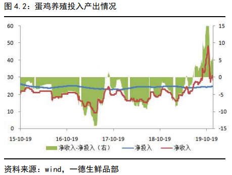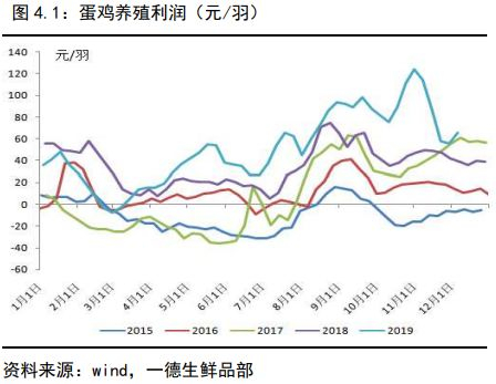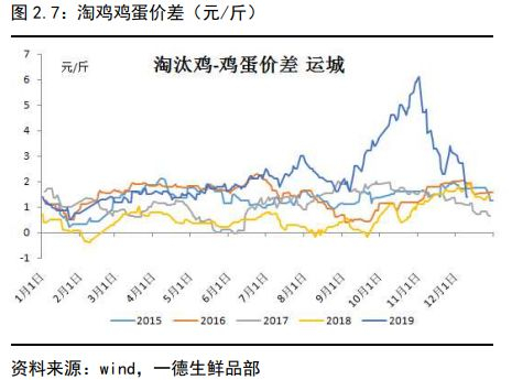 每日养殖利润:2019年鸡蛋价格相对较高,饲料成本变化较小,每日成本和产出差的变化量相对淘汰鸡价格的大幅波动可以忽略不计,主要考虑淘汰鸡价格变化。