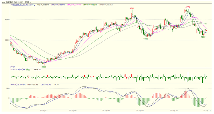 2019年盘面表现出产业与资金间强烈的激斗,一方面是蛋鸡连续高盈利高补栏下的存栏的增长,另一方面是生猪存栏下降导致的猪肉缺口使得肉禽蛋价格的飞涨,多空的博弈推动今年鸡蛋期货的大行情,2019年盘面主要分三个阶段来看。