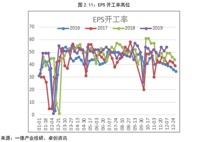 鉴于中国存在较大比例老旧装置,再加上欧美老旧装置,预估明年全球开工率下滑,弥补苯乙烯的过剩。中国苯乙烯三大下游2019年开工始终处于高位,继续提高开工率幅度很小,下游需求增速全靠新增下游装置,而新增装置存在较大的不确定性。因此总体看,明年苯乙烯供需矛盾或有加大。
