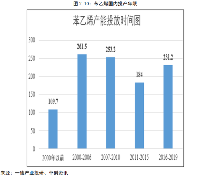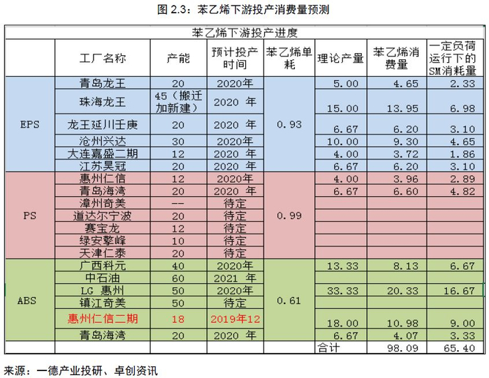 上有纯苯投产,下有三大主力下游投产,自身也在投产期下,我们通过产业链的投产增速和投产量去评估苯乙烯的供需矛盾。先有一个大体概况,然后再到具体细分的绝对量。