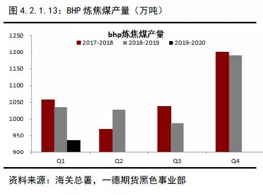 澳洲方面,据澳大利亚联邦产业、创新与科学部发布的《资源和能源季报》数据显示,2018-2019财年,澳大利亚黑煤(不含褐煤)原煤产量5.79亿吨,比上一财年增加459万吨,同比增长0.8%;煤炭出口3.93亿吨,同比增加1125万吨,增长2.95%。其中,炼焦煤出口1.83亿吨,同比增长2.4%。2019年1-6月澳大利亚原煤产量2.87亿吨,同比减少353万吨,下降1.2%;煤炭出口1.94亿吨,同比增加670万吨,增长3.6%,其中炼焦煤出口9264万吨,同比增长5.3%。从排名靠前的企业看,最大的炼焦煤生产商BHP年产量基本稳定在4200万吨附近,英美资源虽然年初受莫兰巴北矿事故影响第一季度产量下滑严重,但是二三季度产量回升较为明显,整个2019年产量预计将增加至2200万吨以上。