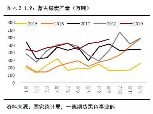 这几个主要进口来源国中,俄罗斯和蒙古与我国接壤,进口便利程度相对较高。尤其是蒙古,其与我国接壤的陆路口岸甘其毛都每天的通关汽车平均在700台,换算成进口煤量大概在5.1万吨左右,且通关时间较短。蒙古炼焦煤2019年1-9月产量同比增长20%,基本都销往中国,表现在中国从蒙古进口同比增涨26%。后期蒙古国计划于2021年建成一条铁路,用于将塔本陶勒盖煤矿(Tavan Tolgoi)生产的煤炭运至中国境内,届时运输方面的瓶颈将大幅缓解,蒙古方供应仍有空间,计划出口增加至4000万吨,增量在1000万吨左右。