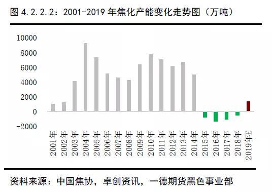 经历了持续三年的焦化行业去产能后,2019年国内焦炭产能再次出现增长。2017年焦化行业利润在供给侧改革红利支撑下快速好转,焦企复产及新产能建设再次迎来一个小高峰。年内投产的焦化产能大多为2017-2018年立项并开工,根据资金及环评等方面影响,建设周期1-2年左右,2019年成为产能释放较为集中的一年。