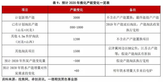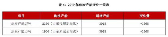 根据上述产能淘汰及新增情况,我们对2020年焦化产能变化情况做出初步预测,如下表所示: