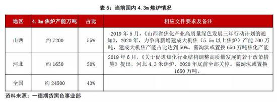 而〔2008〕第15号发布《焦化行业准入条件(2008年修订)》要求,自2009年1月1日起新建顶装常规机焦炉炭化室高度必须≥6.0米、容积≥38.5m3。从这个文件可以理解4.3米焦炉基本是2009年之前建设,到2019年底基本都已经达到10年服役水平。