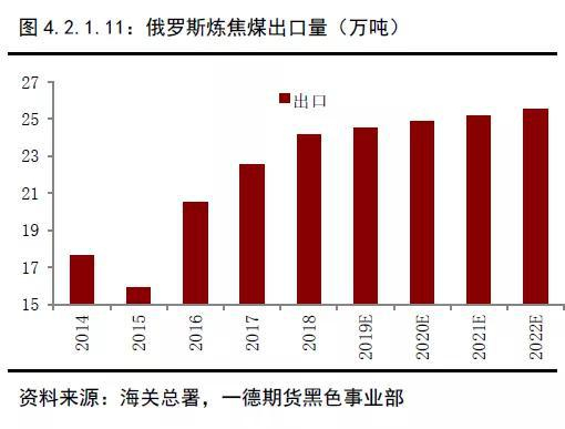俄罗斯方面,根据俄罗斯能源部煤炭工业发展计划草案的保守估计,俄罗斯的炼焦煤产量预计将从2018年的1.011亿吨增长45.4%,至2035年的1.47亿吨。出口量在2018年2410万吨的基础上,至2022年增加6%至2550万吨。未来15年产量增量4600万吨,出口4年内计划增量150万吨。