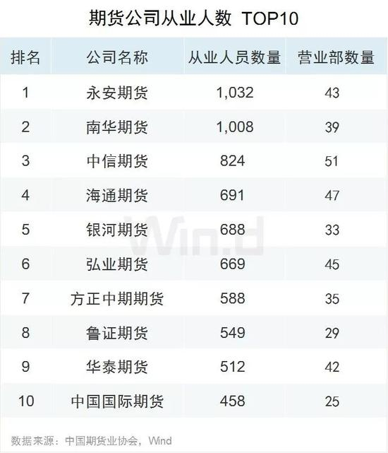 根据最新公布的数据,149家期货公司注册资本合计达到710.9亿元。注册资本排名前10的期货公司累计为175.7亿元,占全行业注册资本的24.7%;全行业从业人员29574人,其中从业人员人数前10的期货公司累计为7019人,占全行业从业人员总数的23.7%。