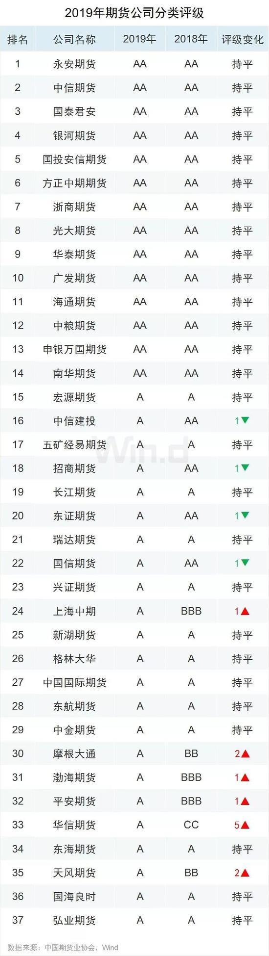 以下为2019年A类及以上期货公司名单:——AA名次变动