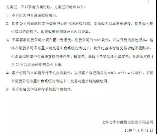 1月13日,文华财经向各期货公司发送了最新版解决方案的执行细则。