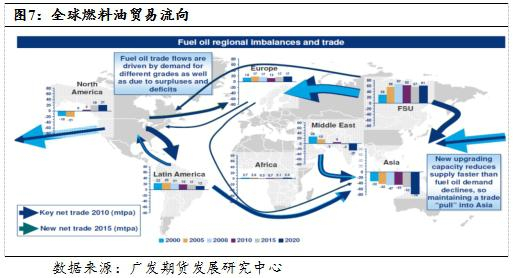 此外,从全球燃料油贸易来看,IMO新规生效后,2020年全球燃料油贸易格局发生了新的变化。具体来看,中东和亚洲地区表现为燃料油净流入的幅度进一步上升,而美洲、欧洲以及俄罗斯地区表现为持续净流出。