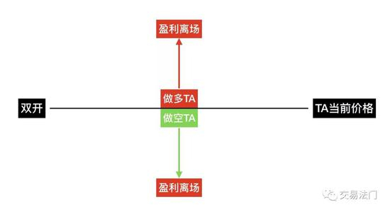 比如,当前 TA 的价格,你在这个位置双开,你的操作水平高的话,你可以做到两条腿最终都盈利出场,假设 TA 先上涨,你多单获利,离场出局,到后来你能拿到价格下跌,最终你的空单也是盈利出场,所以争论为什么做多为什么做空意义不大,重要的是,管你是做多还是做空,怎么样让自己最终都是盈利出场的!