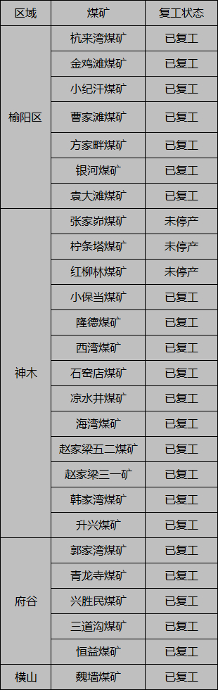榆林煤场大面积复工 等待抢煤&陕西现有煤矿475处
