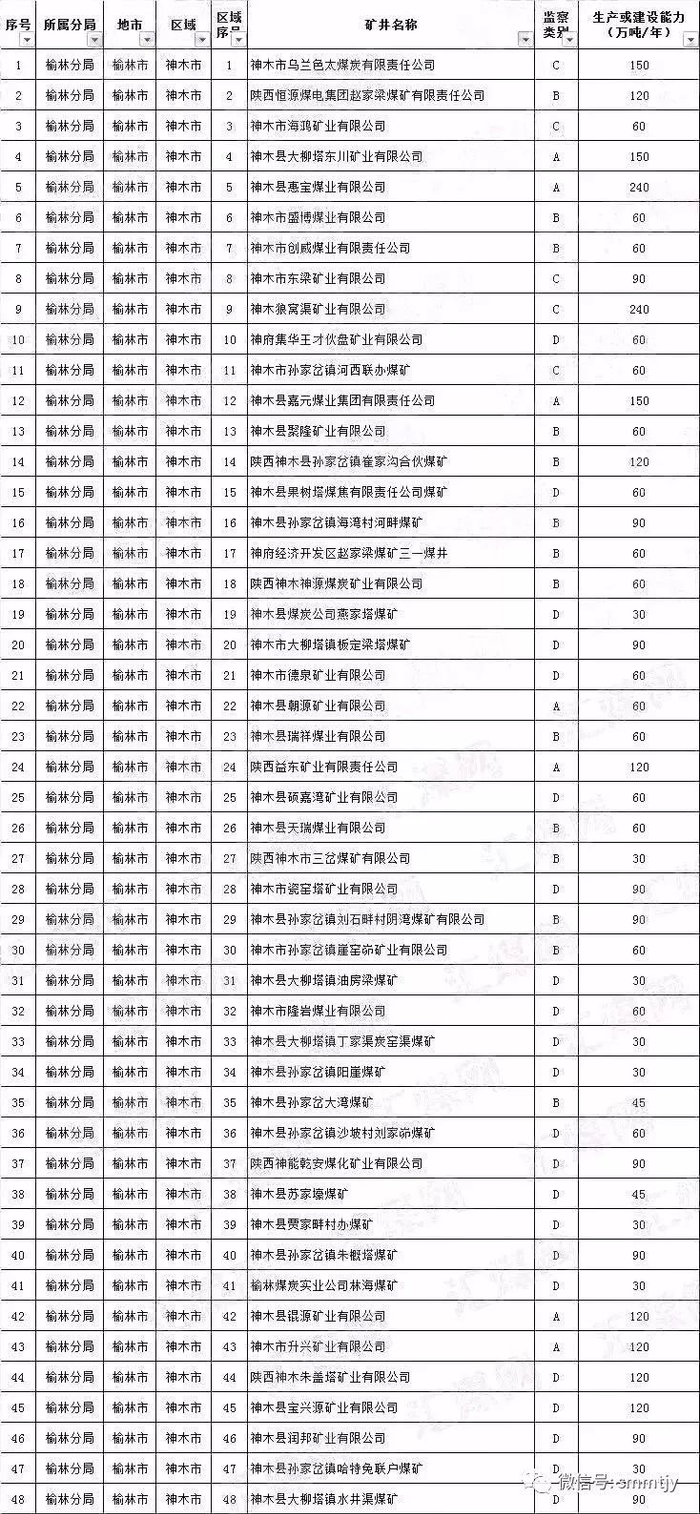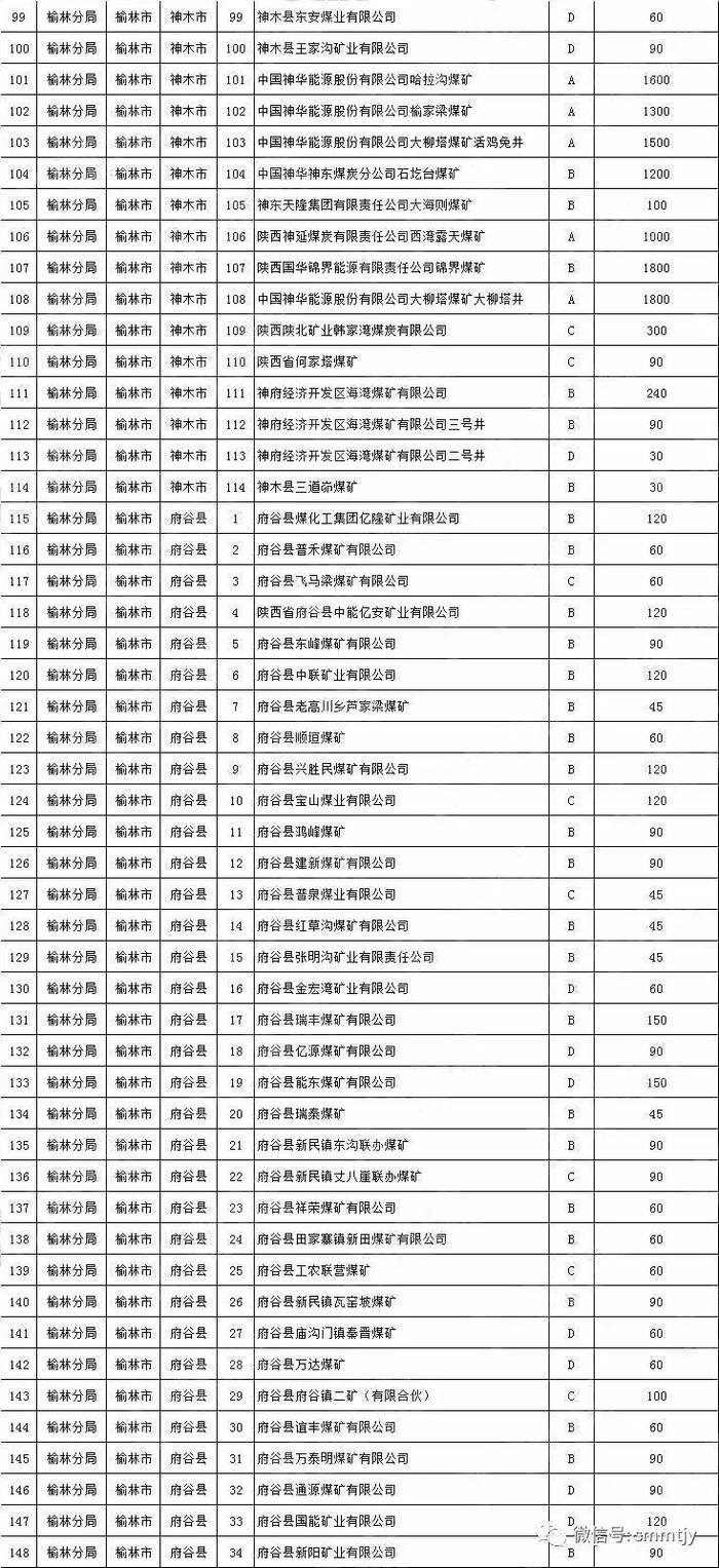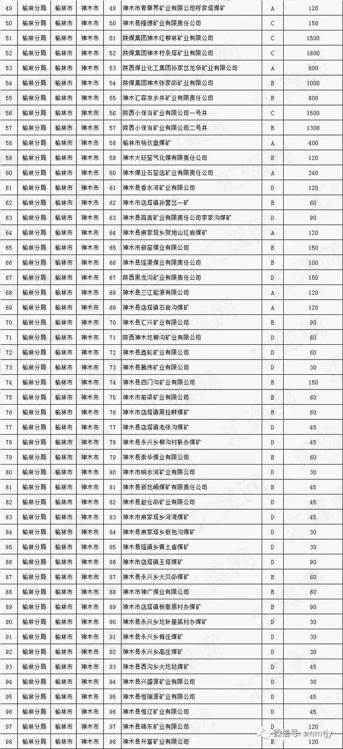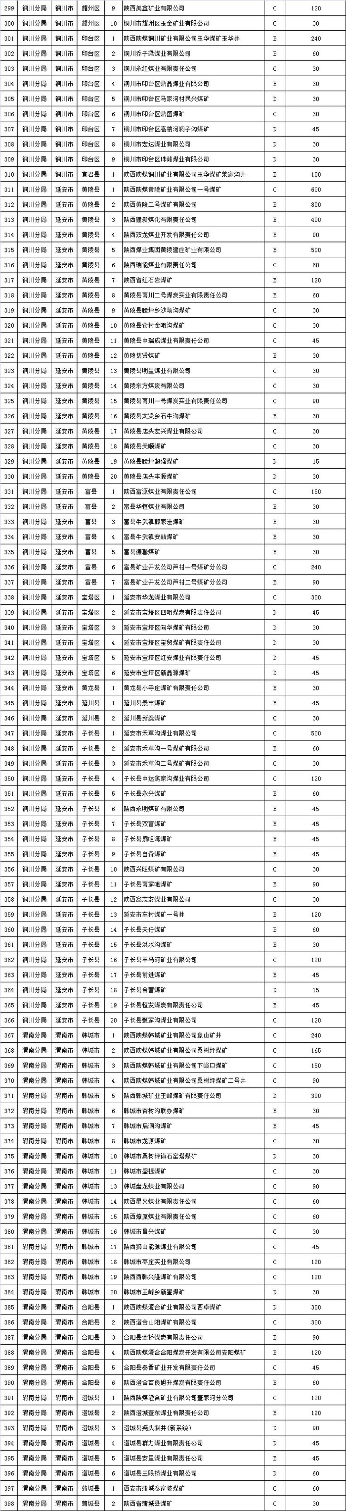 虽然复产煤矿数量逐渐增多,但主要以央企和省属煤矿为主。从今日起,民营煤矿陆续复工,主要从神木区域开始。 陕西省现有煤矿475处,长期停工停产煤矿占38%(附名单) 按照《国家煤矿安监局关于煤矿分类监管监察工作的指导意见》(煤安监监察〔2018〕15号)和陕西煤矿安全监察局、陕西省应急管理厅《关于修订<陕西省煤矿分类实施细则>的通知》(陕煤安监二发〔2019〕229号)要求,以安全风险管控为主线,综合考虑陕西省煤矿安全管理、灾害程度、生产布局、装备工艺、安全诚信、安全生产标准化建设、人员素质及生产建设状态等因素,按照安全保障程度从高到低将全省煤矿划分为A、B、C、D四类。其中:A类为安全保障程度较高煤矿,B类为安全保障程度一般煤矿,C类为安全保障程度较低煤矿,D类为长期停工停产煤矿。 全省475处煤矿分类结果公布如下:A类42处、生产建设能力16379万吨/年,B类142处、生产建设能力20880万吨/年,C类为安全保障程度较低煤矿112处、生产建设能力24856万吨/年,D类179处、生产建设能力11585万吨/年。 附2020年陕西煤矿分类明细: