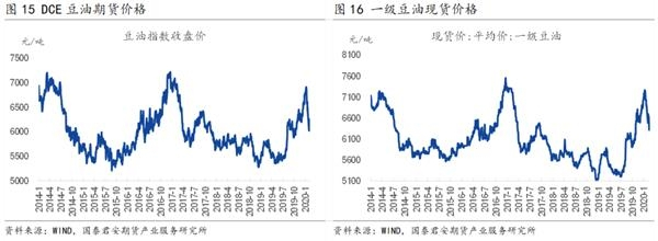 意外疫情引发原油价格大幅下降,降低了豆油的工业需求,也使得国内CPI出现“猪油共振”的概率大幅下降。春节之后,WTI原油指数价格在2月4日创下最低49.67美元/桶,较1月8日高点63.38美元/桶跌幅约21.63%。原油价格大幅下降对于豆油有两方面的影响:一是豆油用作生物柴油的工业需求下降,二是原油价格下降也使得国内CPI出现“猪油共振(猪价和原油价格同步上涨)”的概率下降。国内豆油虽然基本不用作生物柴油,但是美国、巴西和阿根廷豆油均有部分用作生物柴油,在国际原油价格大幅下挫的背景下,国际豆油用作生物柴油的工业需求的利润驱动下降。对于国内而言,由于前期国内豆油价格上涨周期中,基本没有原油价格上涨的驱动,所以目前原油价格下跌带来的工业需求下降对于国内豆油往下驱动也有限,最主要问题就是限制了国际豆油的生物柴油需求成为上涨驱动的可能性。另一方面,原油价格大幅下降,也使得国内CPI出现“猪油共振”的概率下降,原油对于CPI的传导机制主要是通过成本传导,在原油价格大幅下挫的背景下,国内CPI进入下降周期的概率进一步提升,所以原油价格大幅下挫不仅限制了豆油因工业需求驱动上涨的可能性,而且限制了国内CPI出现“猪价、原油价格”同步上涨的可能性,从而国内CPI进入下降周期的概率进一步增加,由此豆油价格进入下降周期概率也就进一步增加。