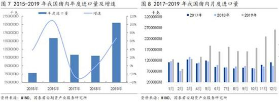 猪肉进口大幅攀升增加了猪肉供应和预期。2019年我国进口猪肉约119.42万吨,同比增加67.18%。其中,2019年10月-12月我国猪肉进口量同比大幅攀升:10-12月我国猪肉月度进口量分别约17.74万吨、22.97万吨和26.14万吨,同比分别增长114%、151%和174%,由此可见2019年4季度我国猪肉进口大幅增加。另一方面,中方进口猪肉预期增加,猪肉进口环节进一步增加了猪肉供应以及猪肉供应逐步增加的预期。